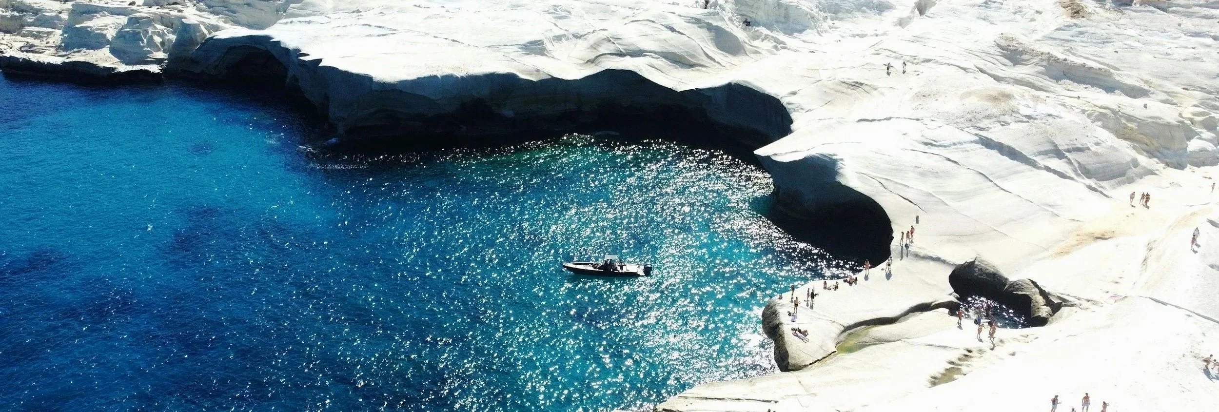 We’ll explore the island of Milos by water, anchoring at Gerakas Bay’s natural hot springs and weave through the ancient pirate hideouts of Kleftiko—caves only accessible by boat.