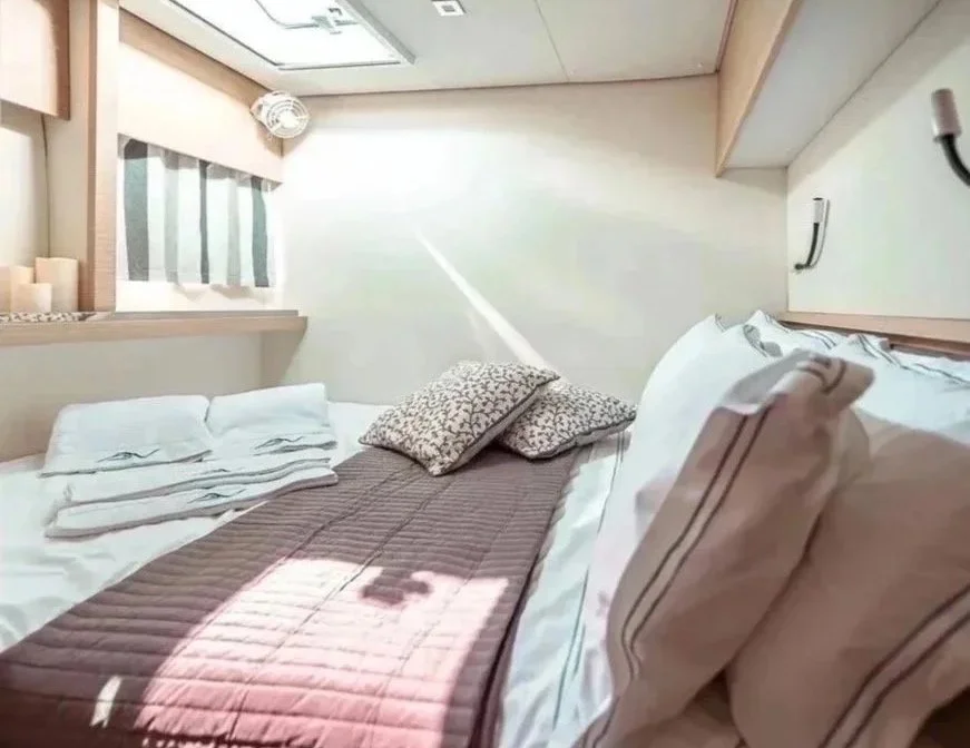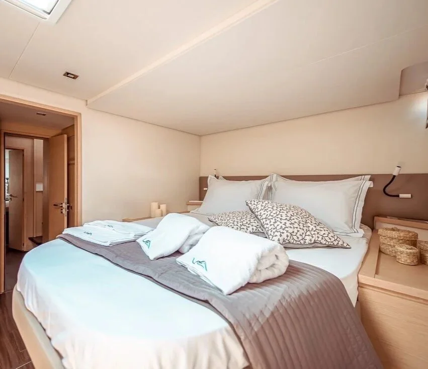 We’ll spend our days aboard a 50ft catamaran, a masterpiece of stability and space.